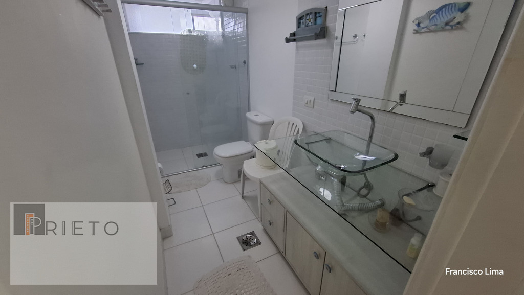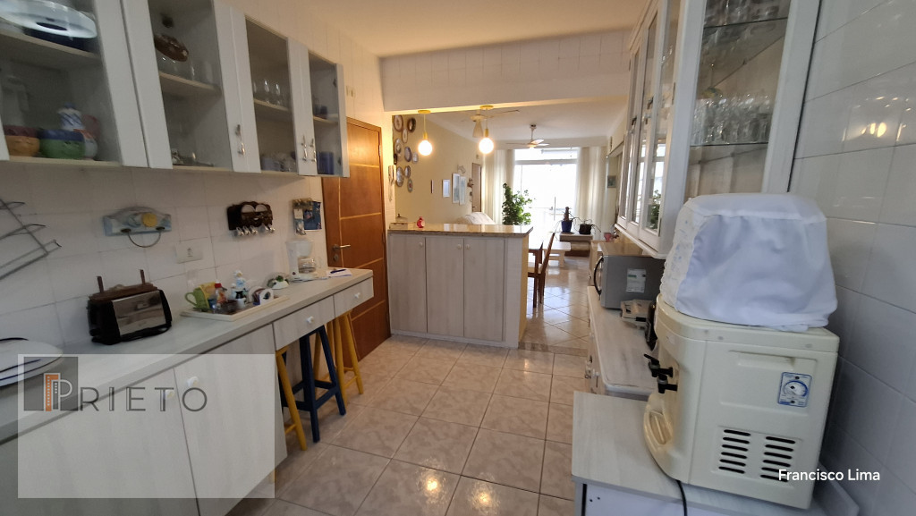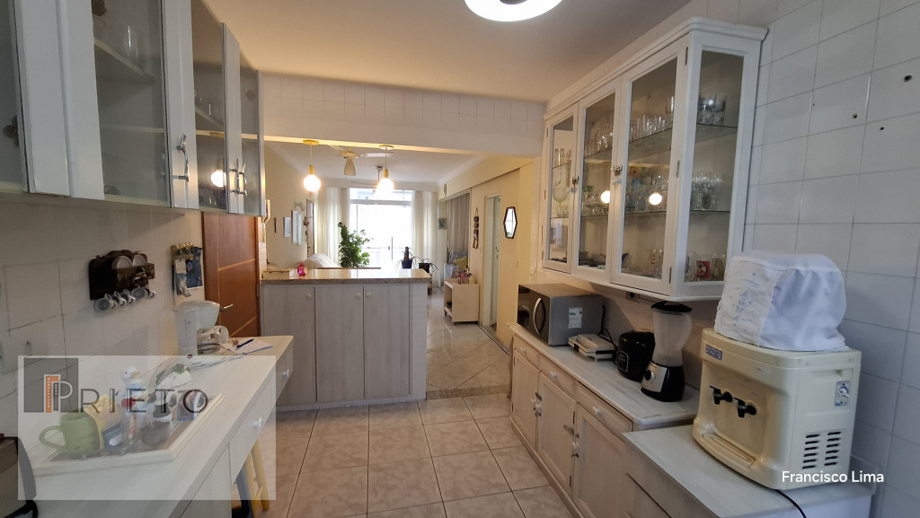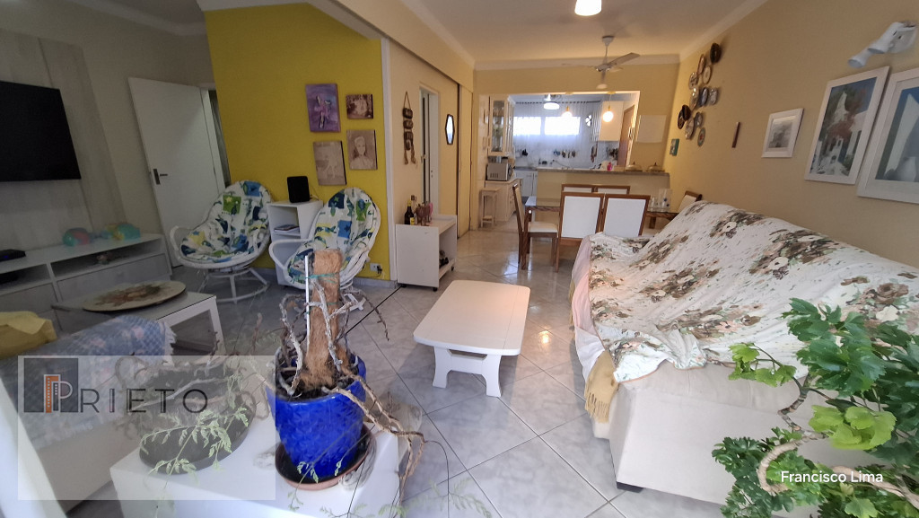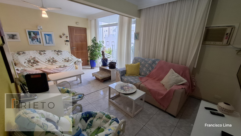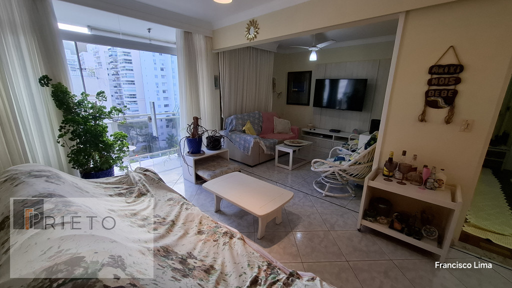 Apartamento em andar alto, com sacada de frente e vista lateral para o mar, com sala 3 ambientes (reverteu um dormitório para sala de TV), 3 dormitórios (reverteu o 3° dormitório para sala), 02 banheiros social, quarto de empregada, 2 vaga de garagens demarcadas (descoberta).